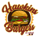 All beef patty, Lettuce, Tomato, Onions, Pickles, Hawkins Sauce, Toasted Bun